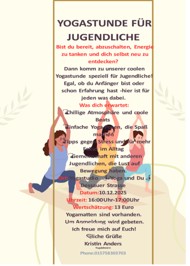 Ort: Yogastudio – Dessauer Straße 288 a, 06886 Lutherstadt Wittenberg